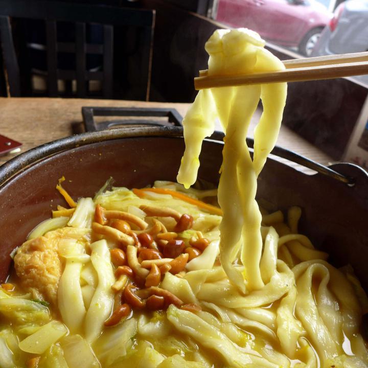山形といえばほうとう。スタートはほうとうの名店「ほうとう不動」から。ほうとうはもちろんのこと、サイドメニューの馬刺しもおいしいです。