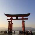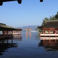 世界的にも珍しい海上建築。海に浮かぶように見える世界遺産。鮮やかな朱色と海の色とのコントラストが美しい。