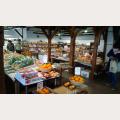 大正時代に建てられた蔵の乾燥場を改装した食料品店です。地産地消を目指し、店内には地元の新鮮野菜や果物、加工品などがずらりと並びます。毎月第2月曜日には地元農家やベーカリーなどが参加する「つきいちマルシェ」を開催しています。