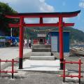 小袖海岸に佇む、小さな社。津波によって被害を受けたが、再建された新しい姿は、復興への決意の表れにも見える。NHKドラマ「あまちゃん」のオープニングにも使われている。