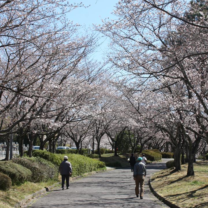 芝生が広がるメタセコイア広場は、お弁当を広げてお花見を楽しむには最適の場所。市街地でありながら緑が多く、散歩がてら桜を眺める人も多い。